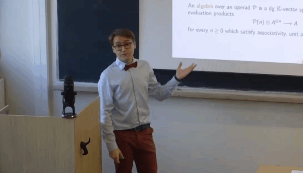 Ma thèse, intitulée « Equations de Maurer-Cartan et espaces d’applications opéradiques en caractéristique positive », dirigé par Benoit Fresse, a été soutenue publiquement le 21 octobre 2025 (voir photo ci-contre).